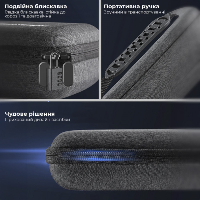- Зручний доступ: Застібка-блискавка забезпечує легкий доступ до вашого Steam Deck і аксесуарів, та гарантує, що ніщо не випаде під час перенесення. Додатковий ланцюг призначений для запобігання іржі та надає чохлу елегантний вигляд.