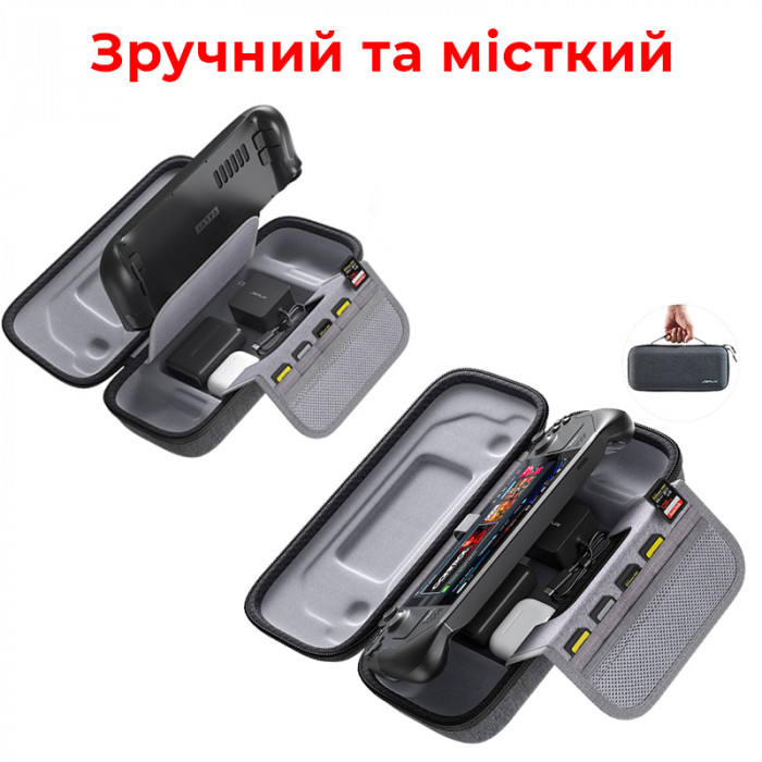 Чохол-сумка JSAUX для Steam Deck сірого кольору - це ідеальний аксесуар для всіх власників Steam Deck, який гарантує безпечний і надійний захист вашого геймпаду вдома і під час подорожей.