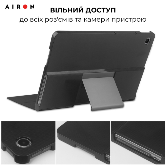 Чохол оснащений зручною підставкою, що забезпечує комфортний кут для перегляду відео, читання або роботи. Точні вирізи на обкладинці дозволяють швидкий доступ до всіх роз’ємів та кнопок, не обмежуючи функціональність пристрою. Premium для Lenovo Tab Plus 2024 — ваш надійний помічник у збереженні планшета!