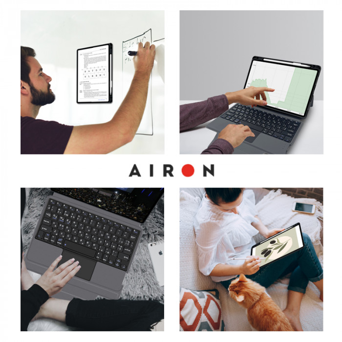 Цей чохол з умною клавіатурою перетворить Lenovo Tab M10 Plus на ще більш функціональний пристрій, ніж просто планшет. З його допомогою ваш пристрій буде функціональним, як ноутбук. Умна клавіатура AIRON ідеально підходить для того, щоб перетворити планшет в ноутбук. Просто підключіть його через Bluetooth, щоб зручно перемикатись між офісними завданнями та розважальним контентом в будь-який час і в будь-якому місці. Клавіатура має вбудовану сенсорну панель SMART TOUCH для ще зручнішого управління.