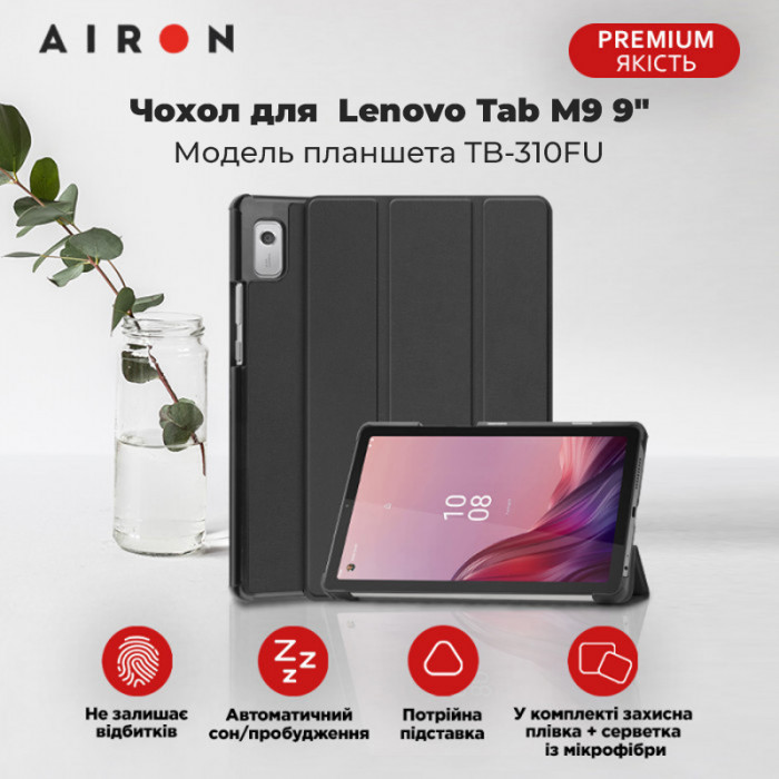 Чохол AIRON Premium для Lenovo Tab M9 9" (TB-310FU) із захисною плівкою та серветкою black