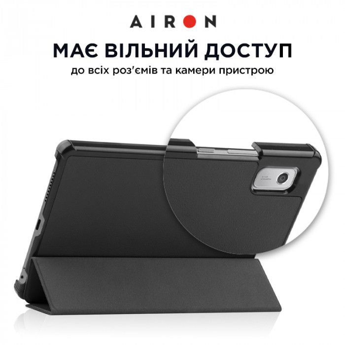 Форма обкладинки AIRON Premium точно відповідає контурам вашого Lenovo Tab M9 9" (TB-310FU), забезпечуючи легкий доступ до всіх роз'ємів.