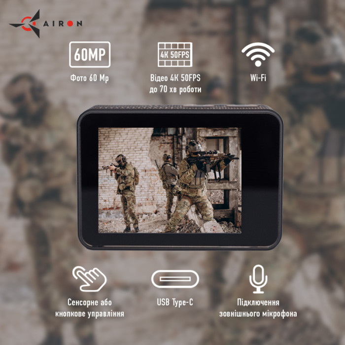 Шукаєш надійного компаньона для фіксації екстремальних ситуацій? Екшн-камера AIRON ProCam 8 – це ідеальний вибір для військових та любителів активного відпочинку.