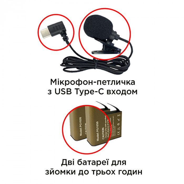 У комплекті також знайдете захисний аквабокс для занурення на глибину до 40 метрів, гнучкий штатив для розміщення камери на будь-якій поверхні, дві батареї для тривалої зйомки, рамковий мікрофон для високоякісного звуку та захисний чохол для зручного транспортування камери під час подорожей.