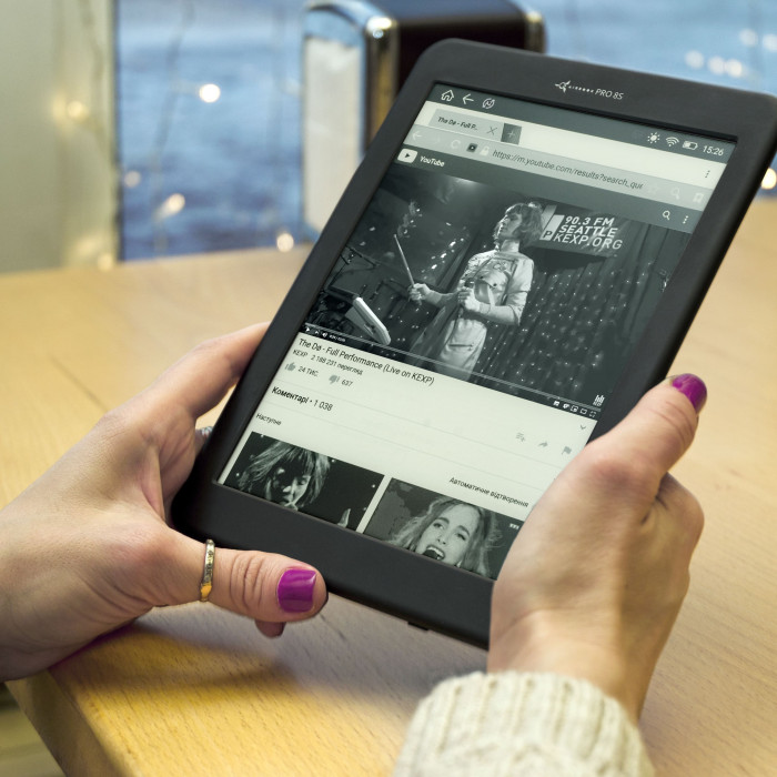 Завдяки вбудованому Wi-Fi модулю електронній книзі доступні всі онлайн-сервіси для швидкого і зручного скачування контенту. Крім того, вільний доступ в інтернет відкриває для вас безмежні можливості не тільки для читання книг, але і для комунікації в соціальних мережах і месенджерах.