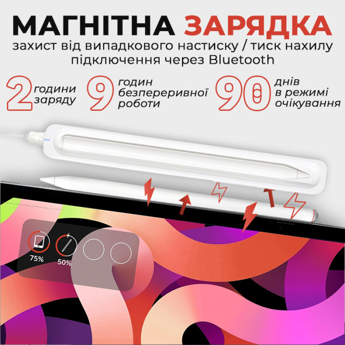 • Магнітна зарядка: зручне заряджання стилуса без додаткових кабелів.