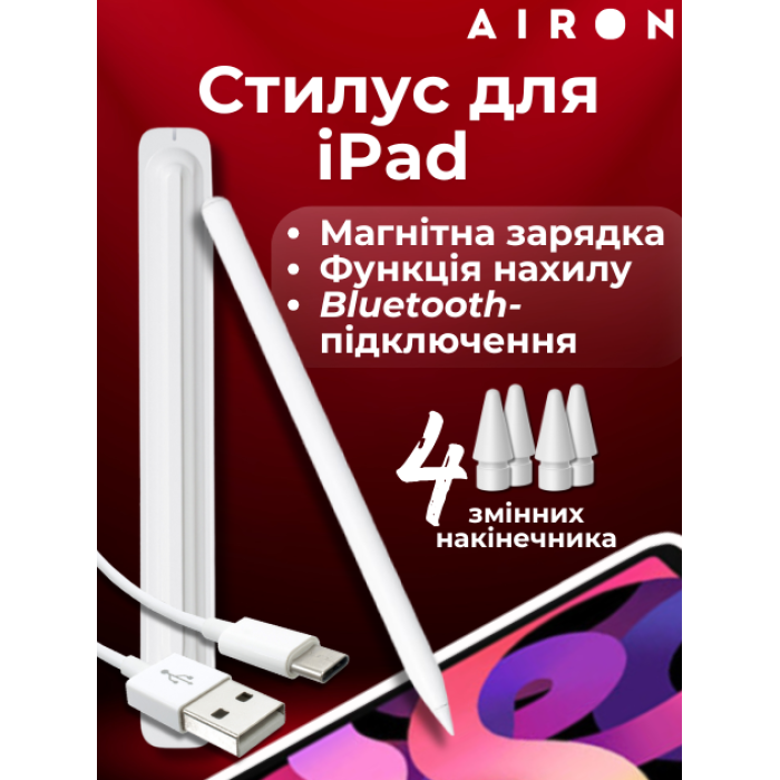 Теги: Стилус AirSens для iPad із зарядним кейсом, 3229, Стилус AirSens, AirSens для iPad, магнітна зарядка, змінне перо, високоточний ввід, продуктивність, творчість, аксесуари для iPad, стилус, ручка